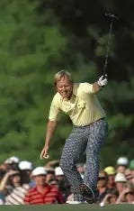 My all-time favorite Masters was Nicklaus in ‘86. Forty years ago, an aging Golden Bear shot 30 on the final 9-holes to claim his 6th and final Green Jacket. The picture below hangs in my office. This iconic photo shows the birdie putt on 17 which put Nicklaus in the lead.